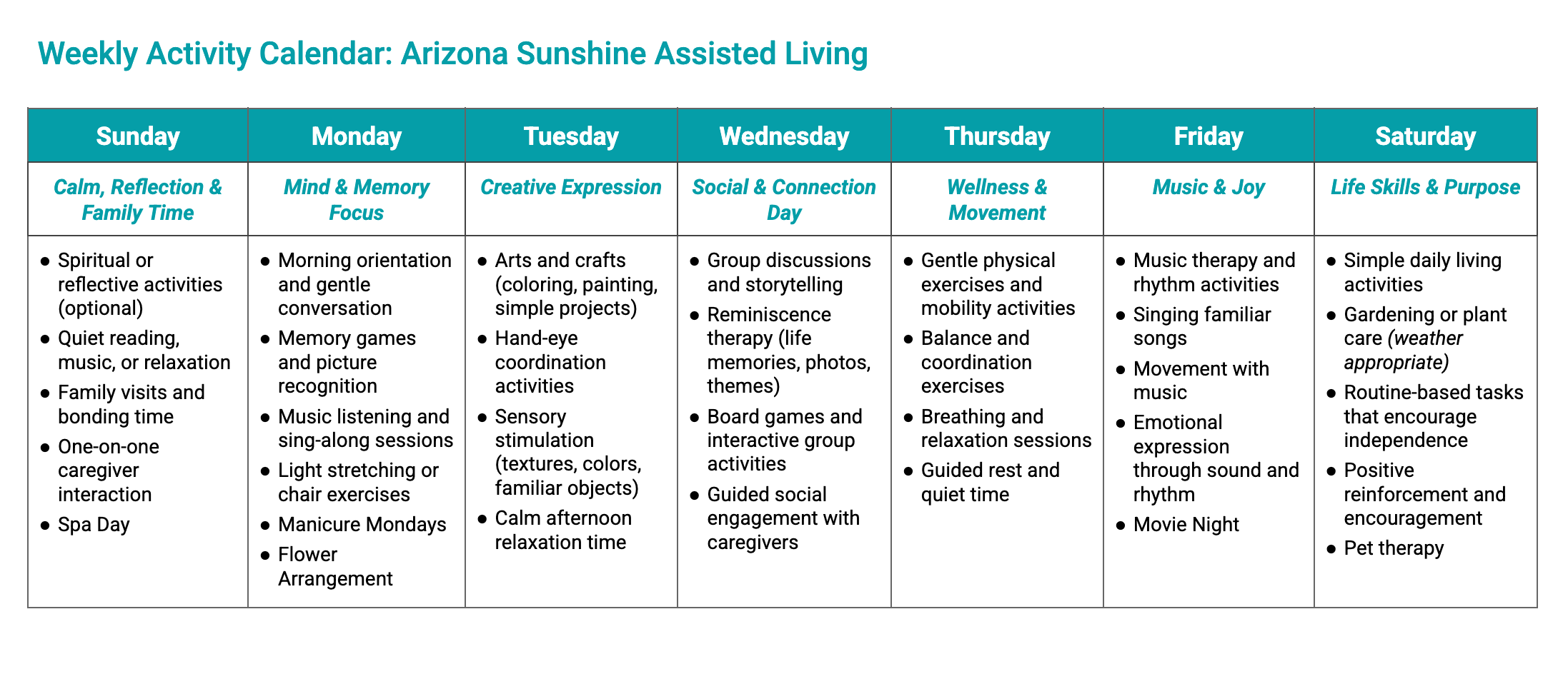 At Arizona Sunshine Assisted Living, we are dedicated to providing compassionate, personalized care in a warm, welcoming environment. Our Assisted Living Home offers highly personal and attentive one-on-one care, engaging activities, and peace of mind for families.